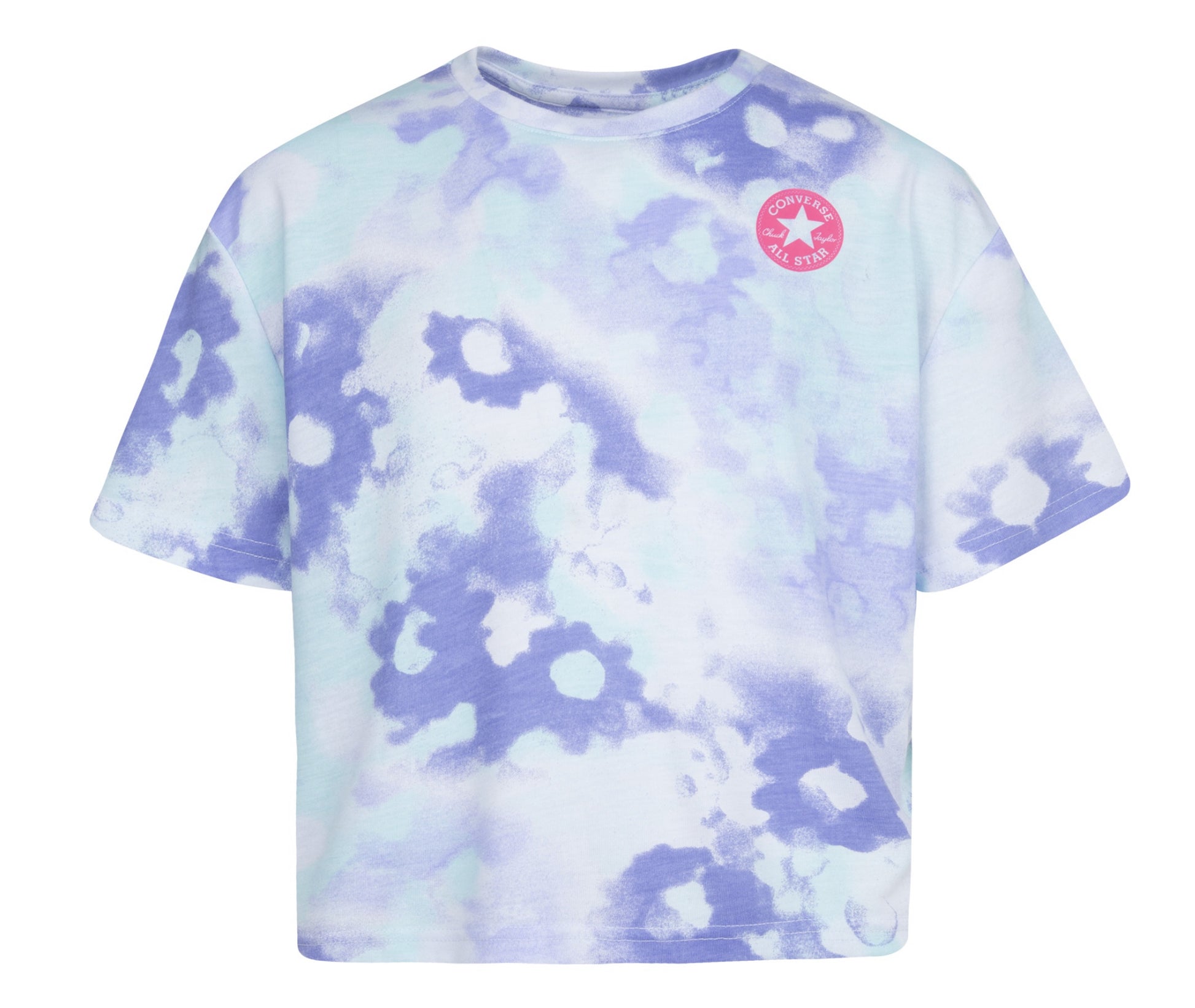Soft jersey t-shirt with a crew neck, short sleeves, straight hem, and a boxy fit. Finished with a Chuck Patch logo on the chest, All-over print and a tagless neck design.