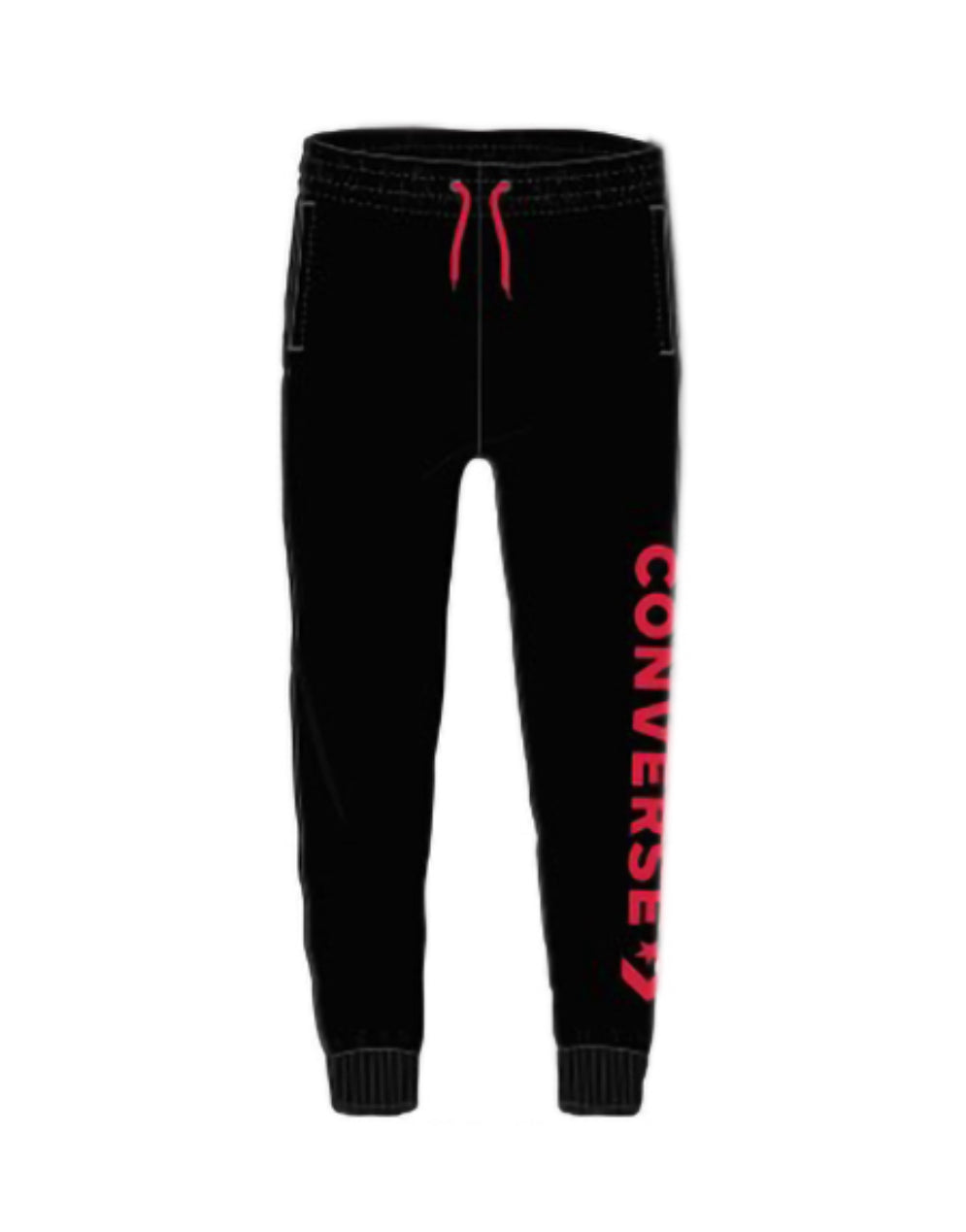 These pants by Converse are made of soft brushed back poly tricot fabric for a cozy feel. They have a stretch waistband with drawcord to help you get a fit that’s just right, side pockets and a tapered leg with ribbed cuffs provide a cozy feel. Finished with a Converse Wordmark logo.