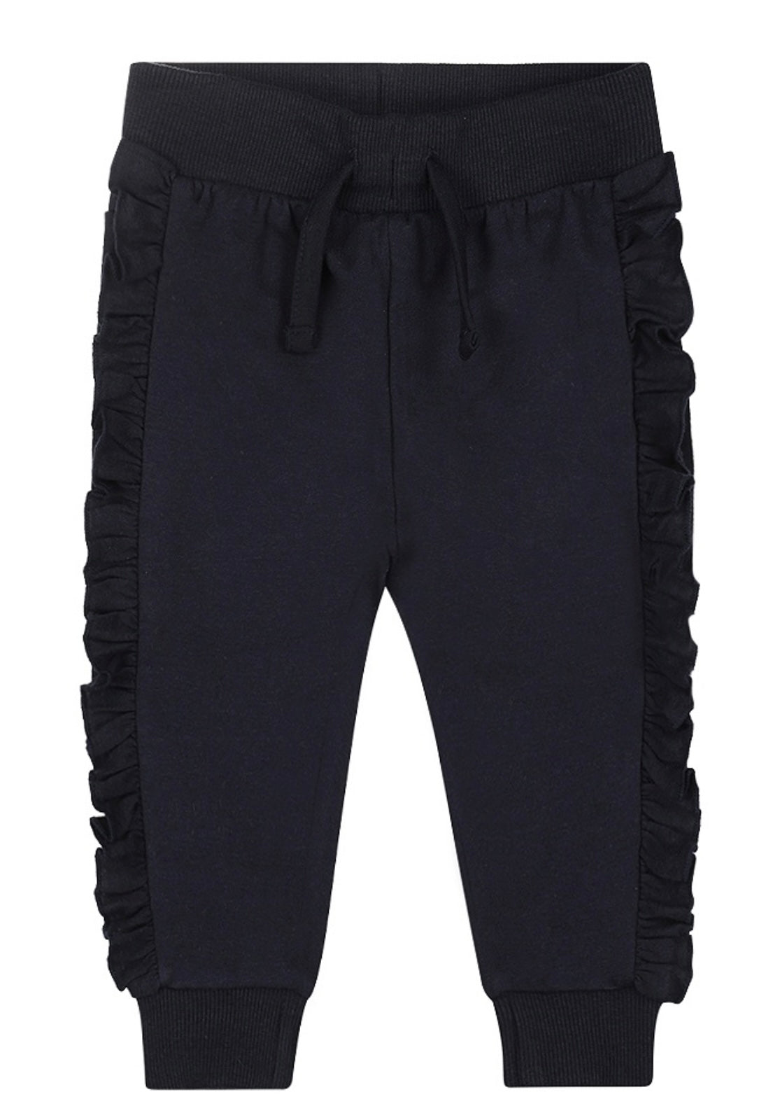 A fine basic that should not be missing in your girl's wardrobe: this dark blue jogging pants by Dirkje! Made of soft cotton with stretch for optimal comfort, perfect for every day. The cute ruffles along the legs give the pants a playful look, while the neutral dark blue color makes it easy to combine with other items from the Dirkje collection.
