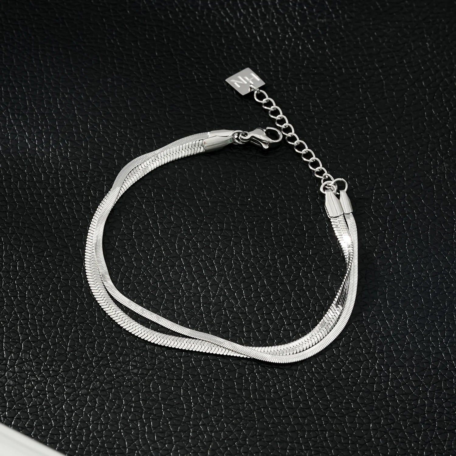 Jewel up in style. Bring rich texture and shine to your arm with this classic, yet contemporary 2-layer bracelet in two varying widths.