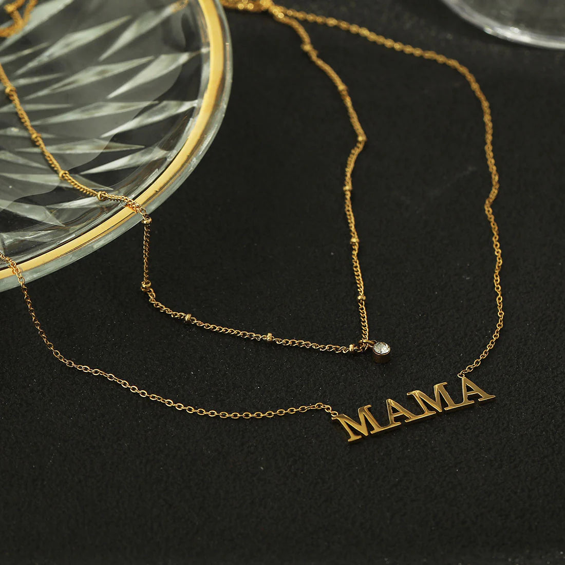 Celebrate motherhood with this two layered MAMA necklace. The perfect piece to symbolise the special place for mothers in our hearts and in our minds.