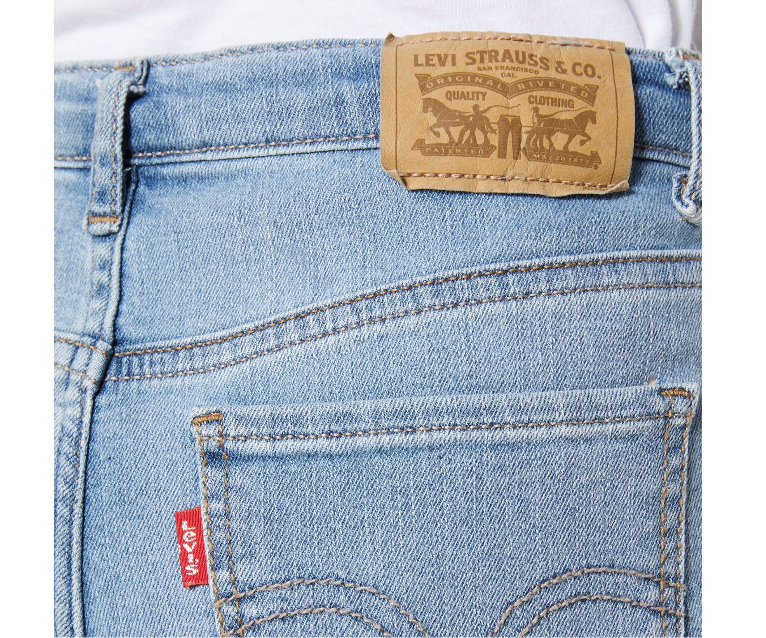 Stretch denim high waisted jeans with a Slim fit through thighs and a super skinny leg. Features include a 5 pocket design, belt loops, adjustable waistband and a zipper fly with button closure. Finished with a Levis woven label on the Back pocket.