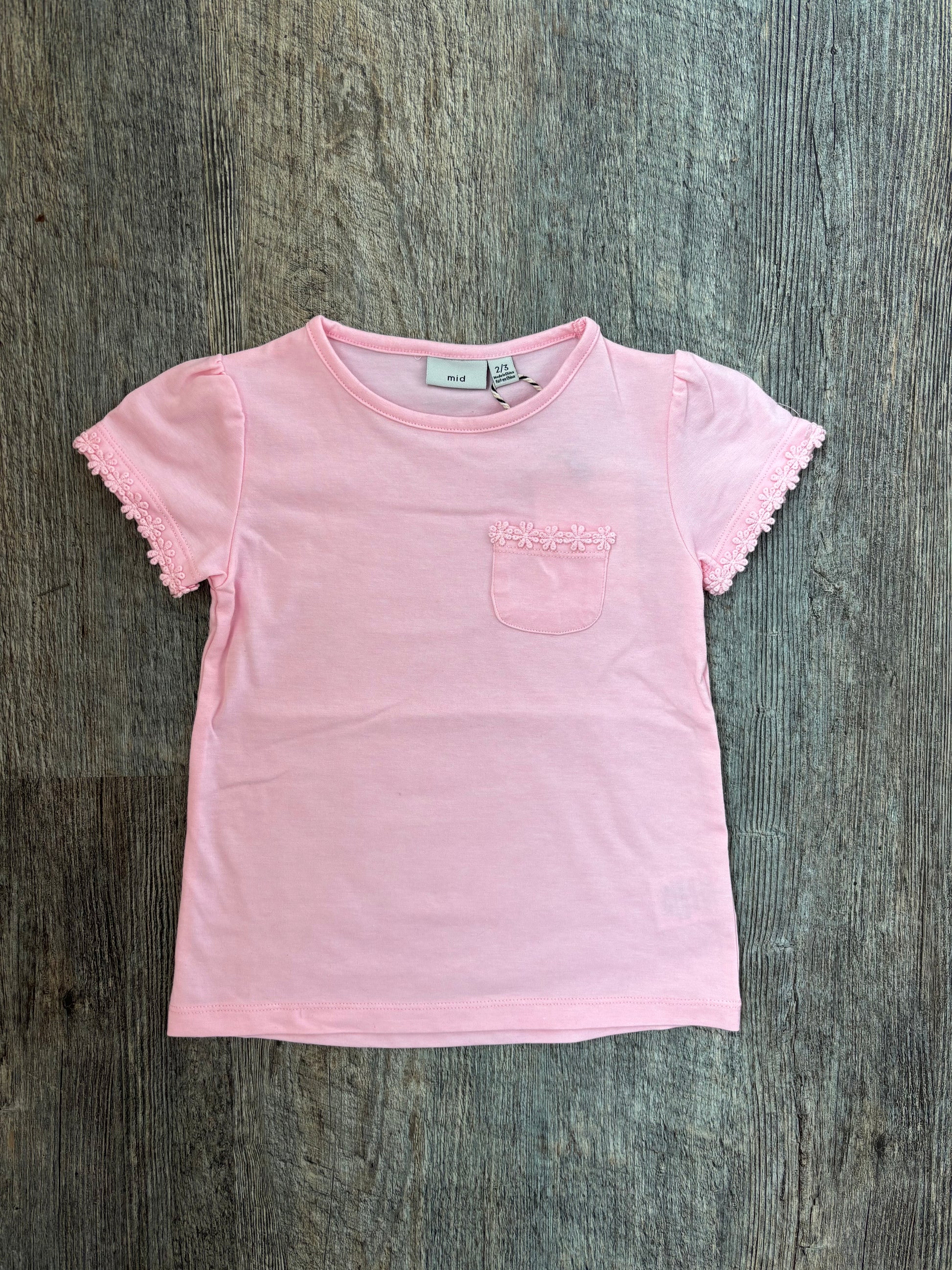 The perfect basic tee with an added floral trim on the sleeves and pocket.