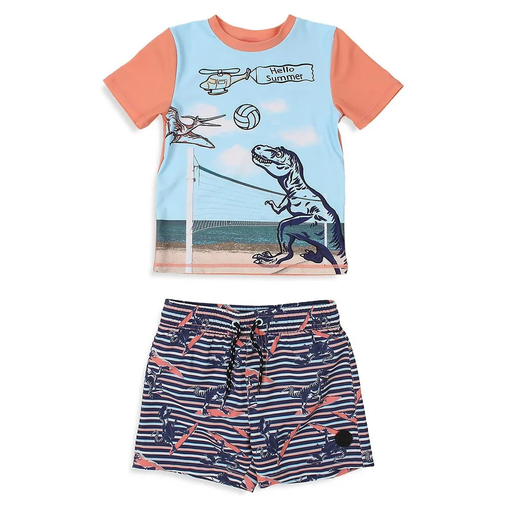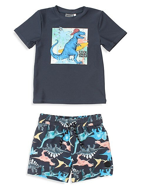 From the Dinosurf Collection. Designed for oceanside adventures, this two-piece swim set provides everything your little surfer needs for making a splash freely.
