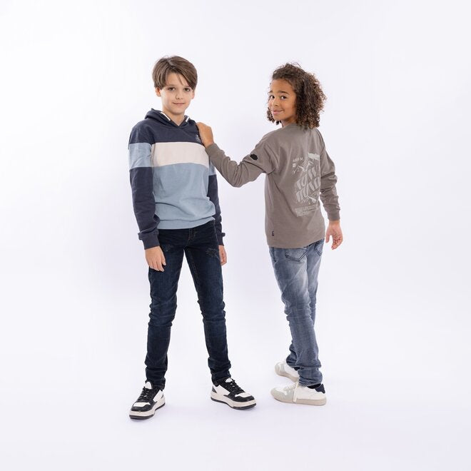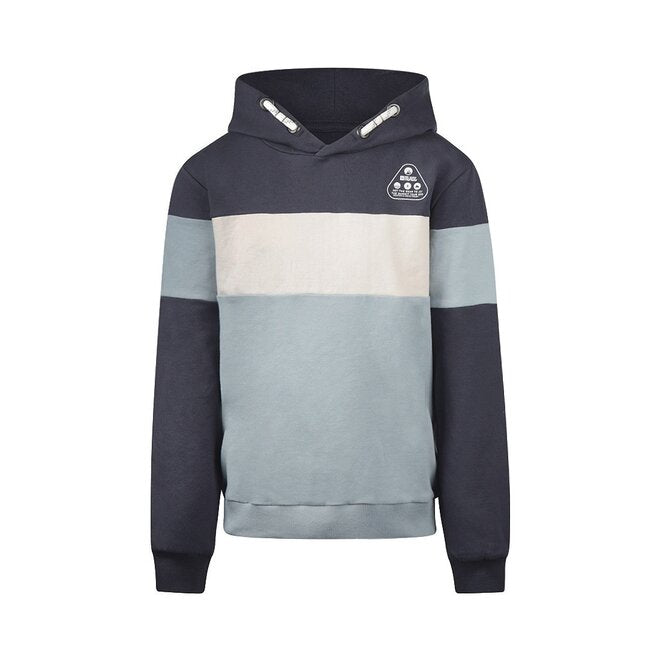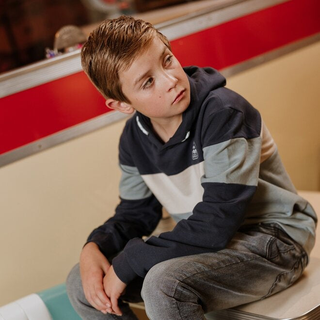 Get ready for chilly days with this eye-catching No Way Monday hoodie. This boys' hooded sweatshirt stands out with bold colour patches in anthracite, light blue and off white that create a playful and modern effect. The jumper has a relaxed fit and is perfect to pair with your favourite trousers.