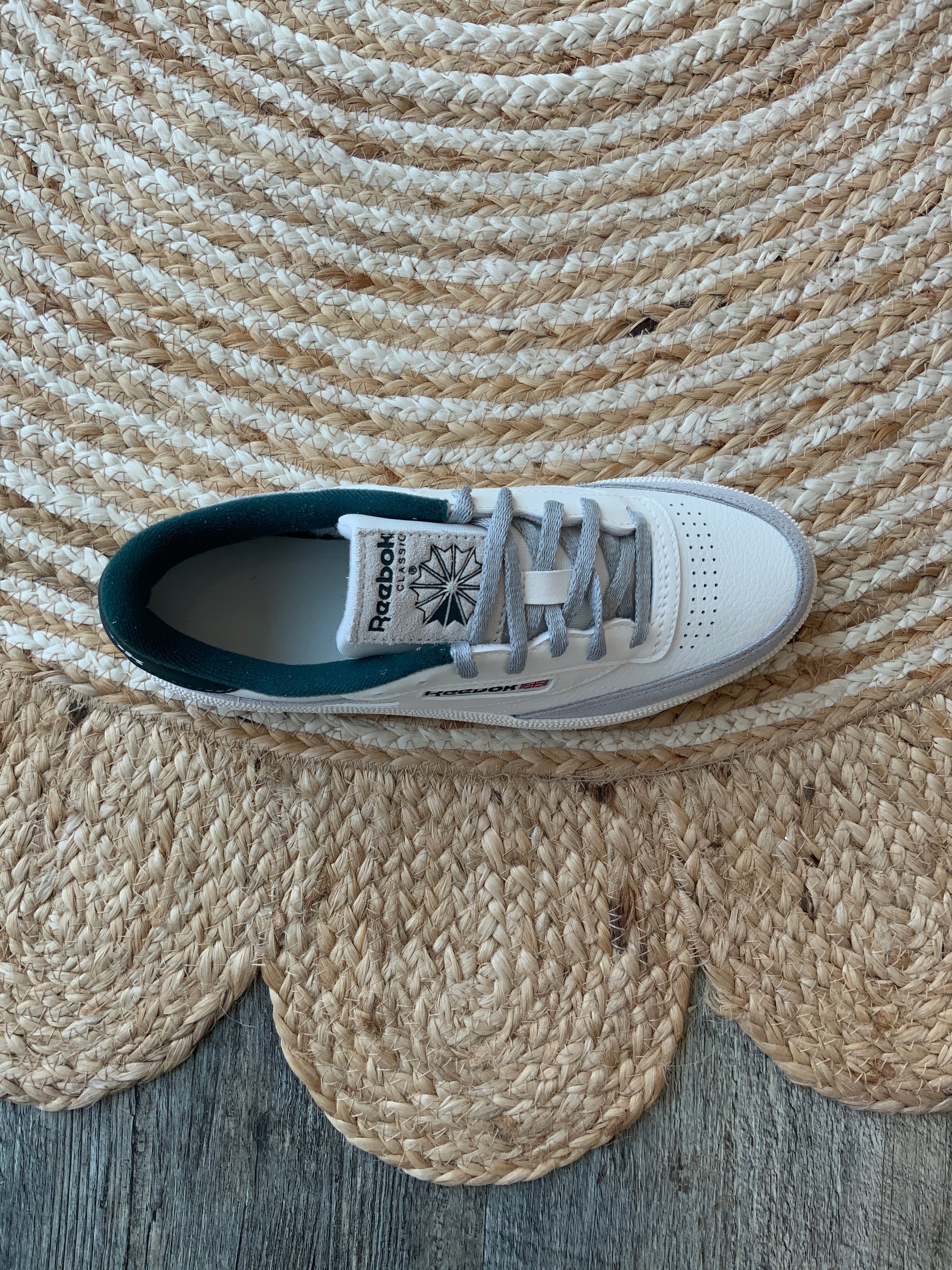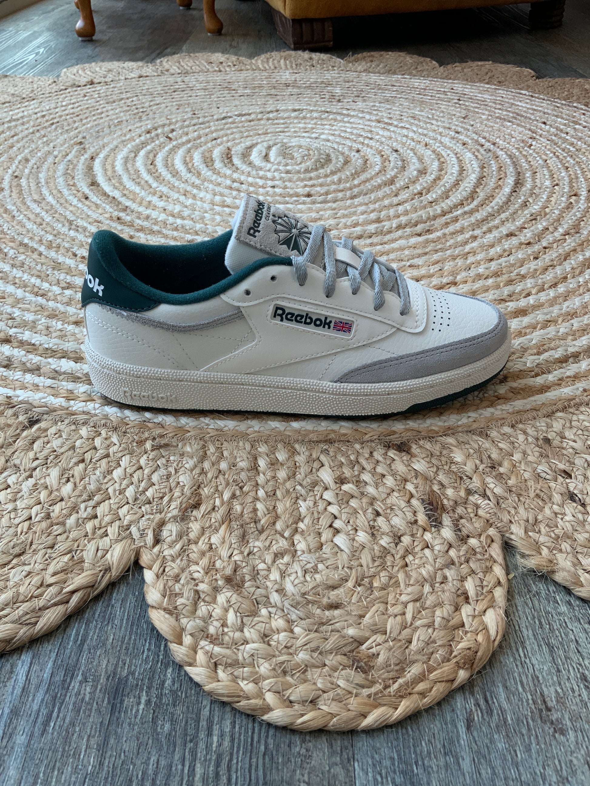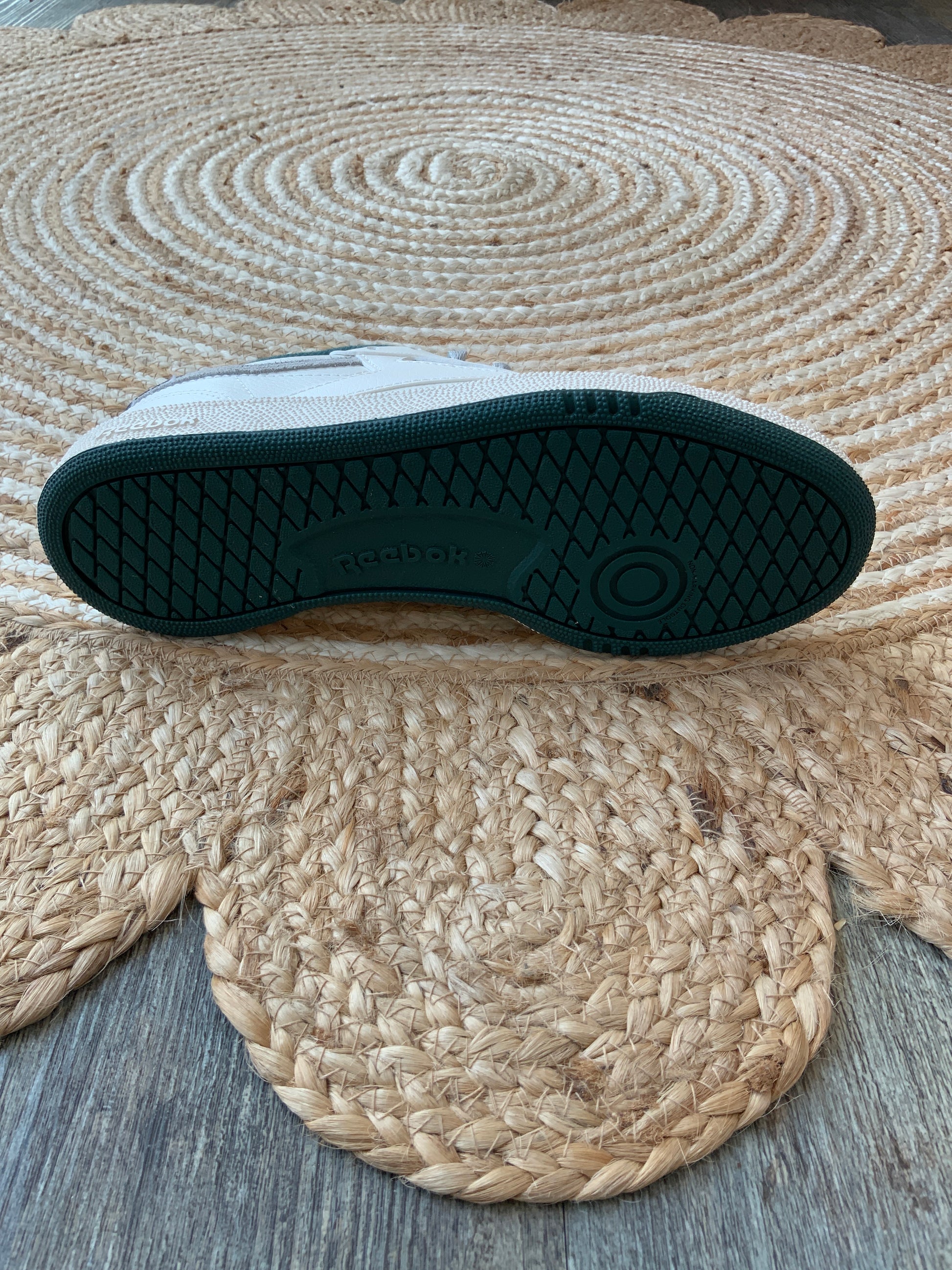 Reebok Club C. Frost green and Chalk in colour. Leather upper with suede detailing around toe.