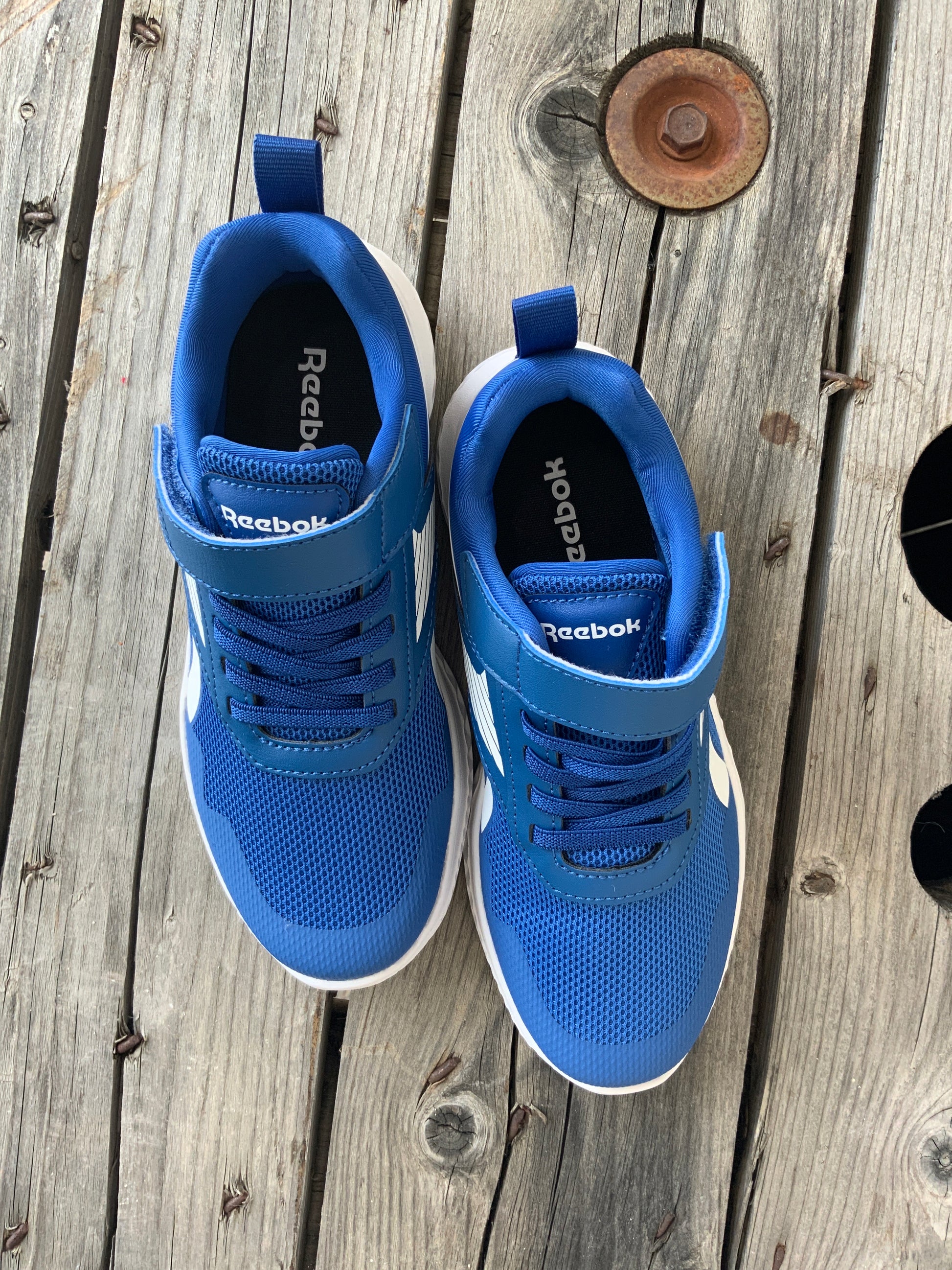 Sizes 10.5-3 have elastic laces with a velcro strap across the top.