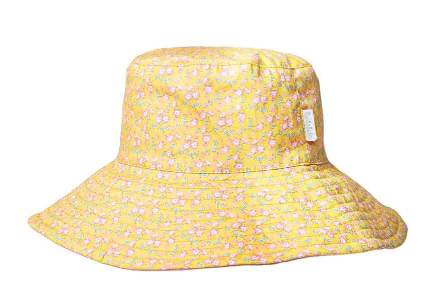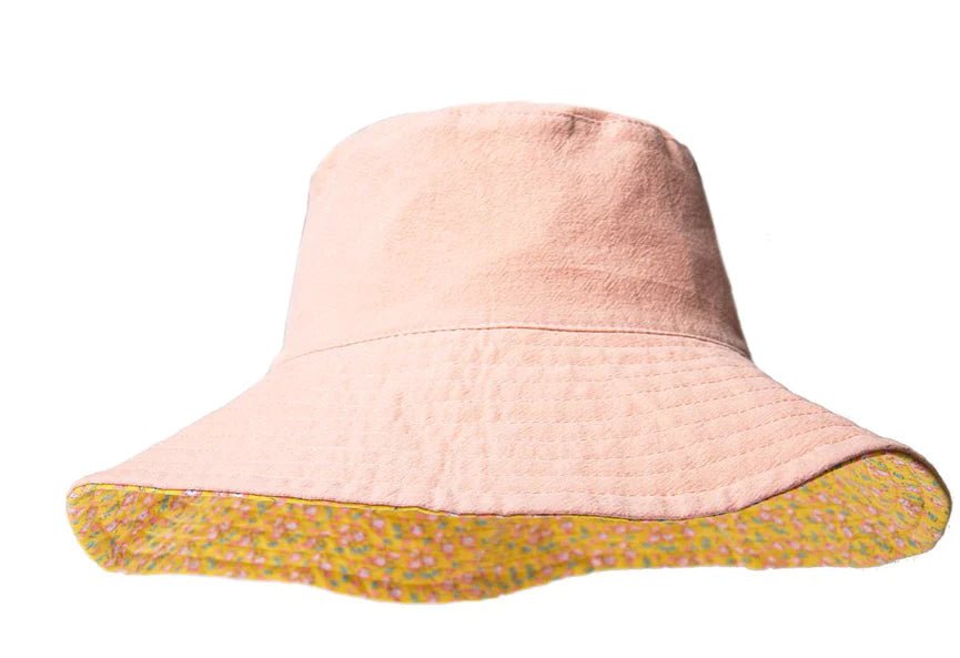 Shade yourself from the sun in this beautiful blossom print sun hat! Fully reversible with our beautiful blossom print on one side, and a soft pinky peach fabric on the other. With a wide brim for extra shade, a totally practical hat for adventures in the garden, the park or on holiday!
