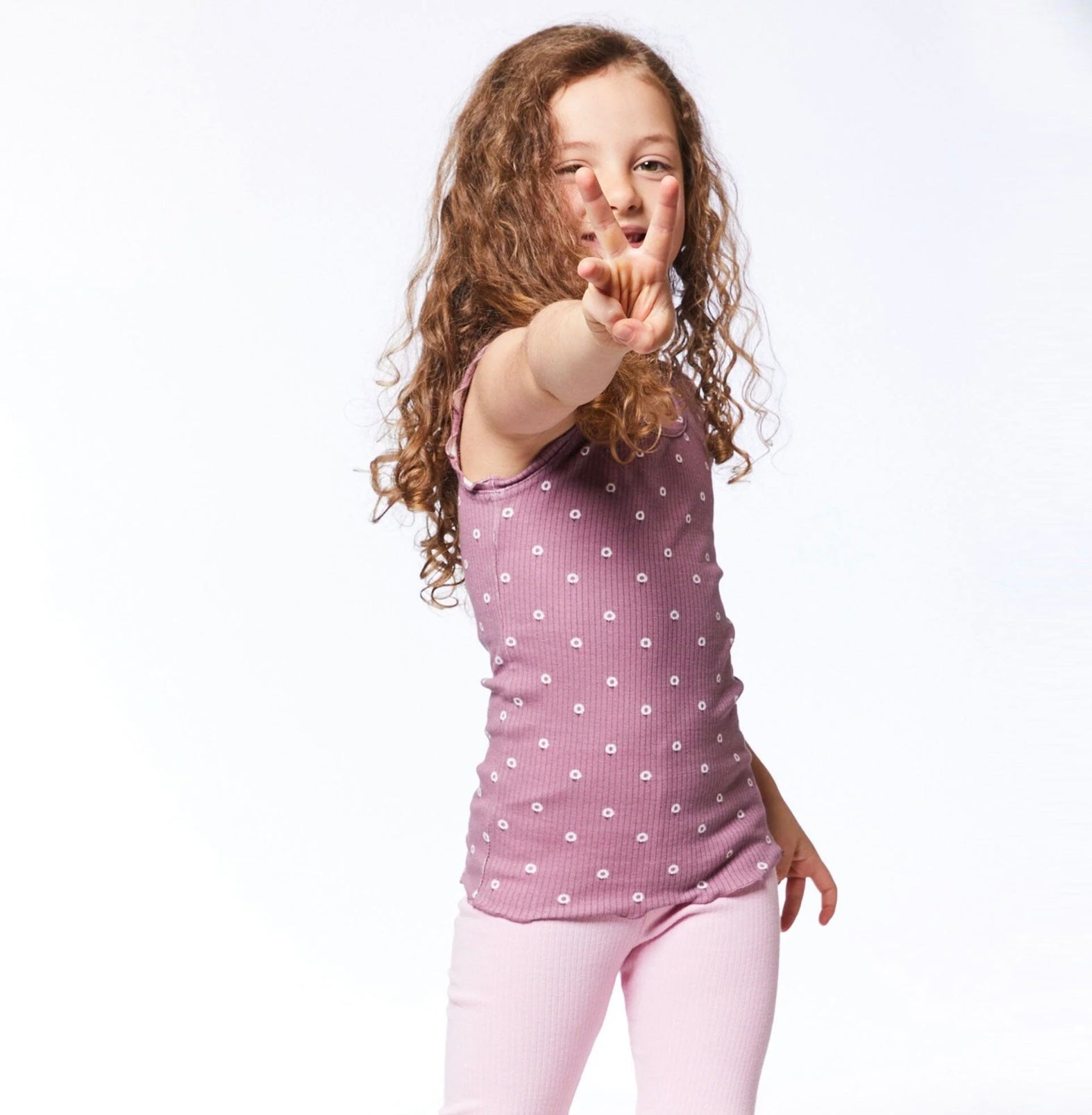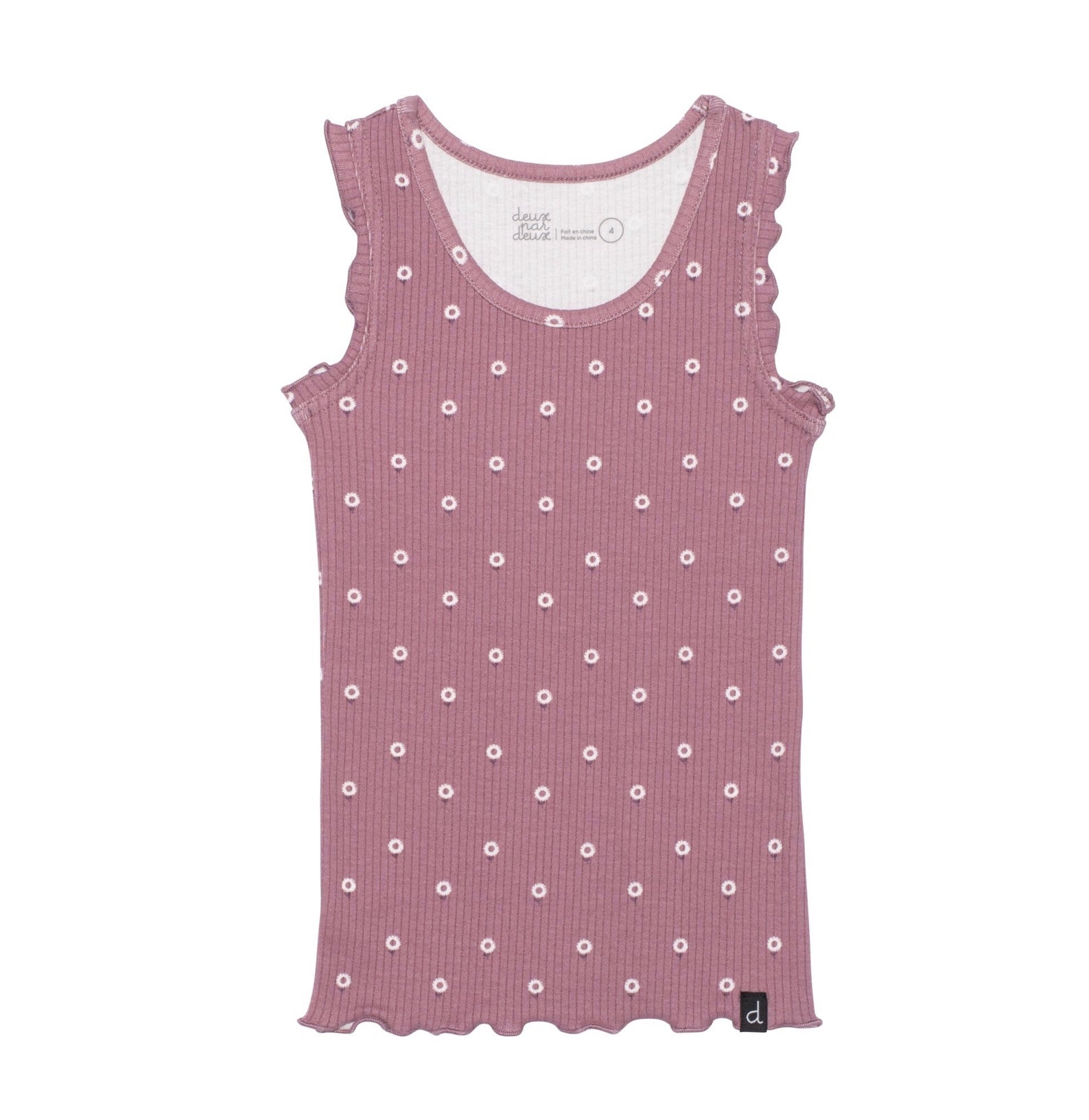 An allover daisy print makes this tank top a sweet choice for any warm day. Our Printed Tank Dusty Mauve is made from a ribbed cotton/elastane blend and features wide straps, a scoop neckline, and soft lettuce edging at the armholes and hem.