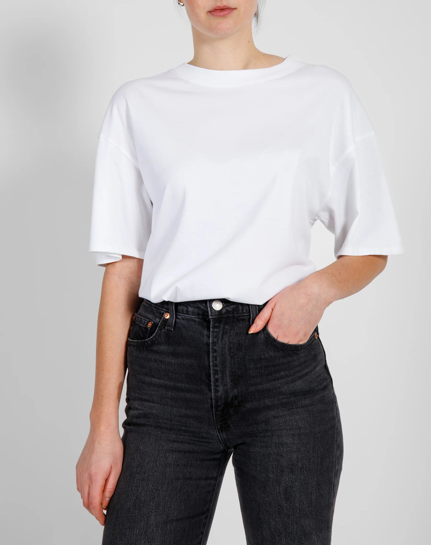 Our 100% cotton Oversized Boxy Tee features a wide-cut body and hits below your hips. Stick true to size for a perfectly slouchy, oversized fit - like that favourite vintage tee hanging in your closet.