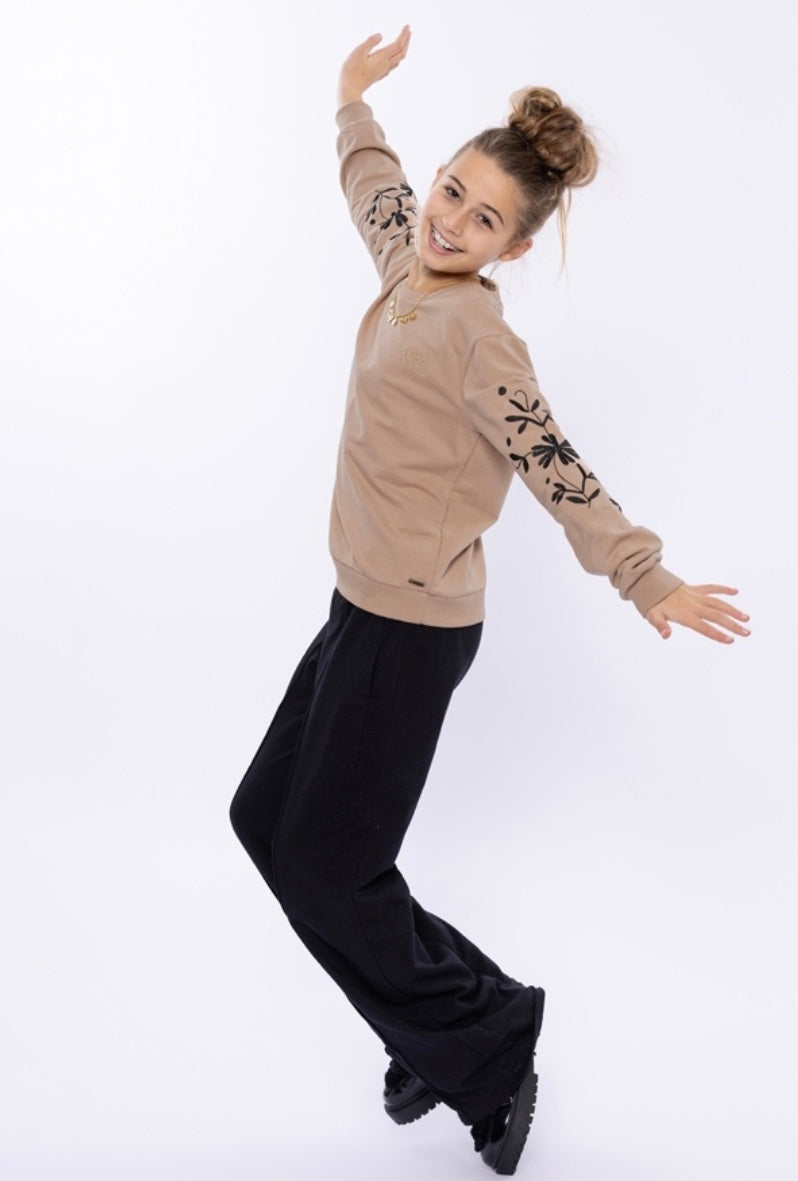 No Way Monday girls jumper taupe embroidered flower Sleeve