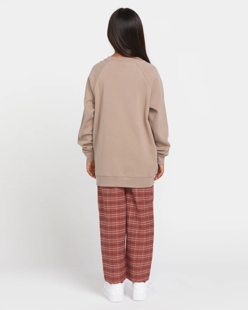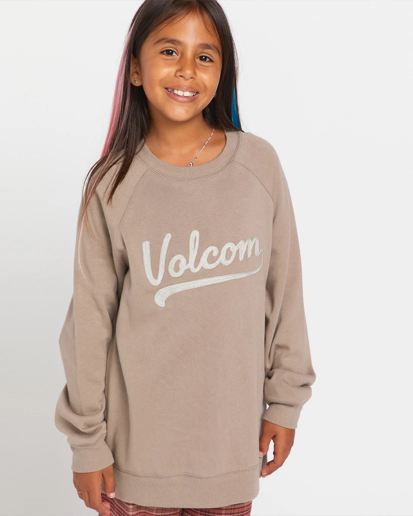 Crafted from buttery soft brushed-back fleece in a roomy oversized raglan design, this Big Girls Truly Stokin Pullover crew neck sweatshirt just might be her new favorite! With plenty of room for layers underneath and a little signature Volcom style, she'll be Truly Stokin' in this. She can pair it with her favorite jeans for a laidback, athleisure-inspired look, or curl up on the couch and stay cozy at home. Featured here in grey.