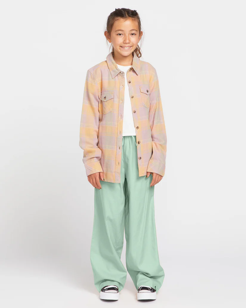Big Girls Rad Plaid beige Long Sleeve Shirt is crafted from soft 100% cotton brushed flannel, this Rad Plaid long sleeve shirt features a collared design with chest pockets and a stone embroidered logo. She'll stay cozy on cooler days while the classic plaid pattern and tortoiseshell buttons will keep her feeling stylish with this vintage-inspired look.