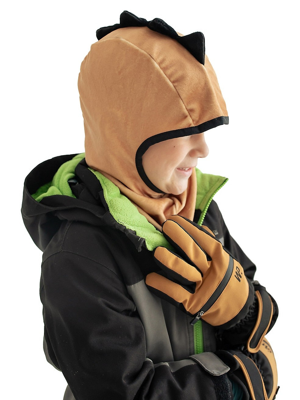 Keep warm on chilly winter days with this super soft, warm camel and black fleece dino spike balaclava! He'll be comfy as can be and fierce as his favorite dinosaur - roaring all the way!